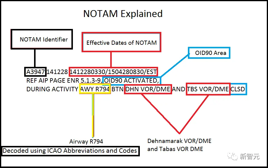 此外,为了使沟通更有效率,NOTAM采用一种“缩写”的形式进行记录,通常使用大写字母发布。