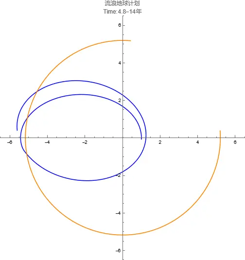 我假想了下地球升轨到木星轨道的过程,如果按第二节计算得到的发动机推力,这个过程至少要花上百年。为了赶上电影的时间线进度,我们先不考虑发动机的推力问题,直接假设每次在近日点点火能为地球产生3km/s的增速,那么只需要3次变轨就能完成。