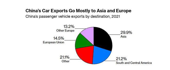 中国汽车品牌现在是中东和拉丁美洲市场的领跑者。在欧洲,销售的中国制造汽车大多是特斯拉公司的电动车型,以及沃尔沃、名爵和达契亚等中国拥有的前欧洲品牌。宝马在全球最畅销的电动汽车iX3仅在中国生产,并出口到欧洲。
