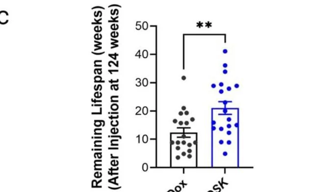 实验中,他们选取了124周小鼠,该周龄相当于人类77岁。通常,它们已接近生命尽头。