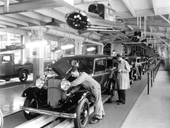 福特汽车公司早期的一条装配线 图源:源于网络