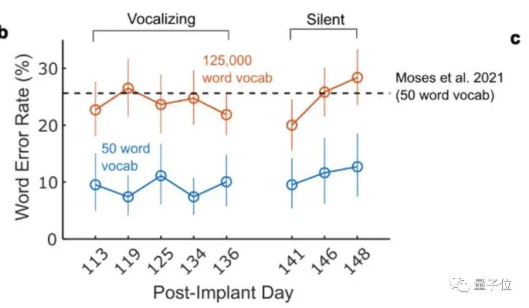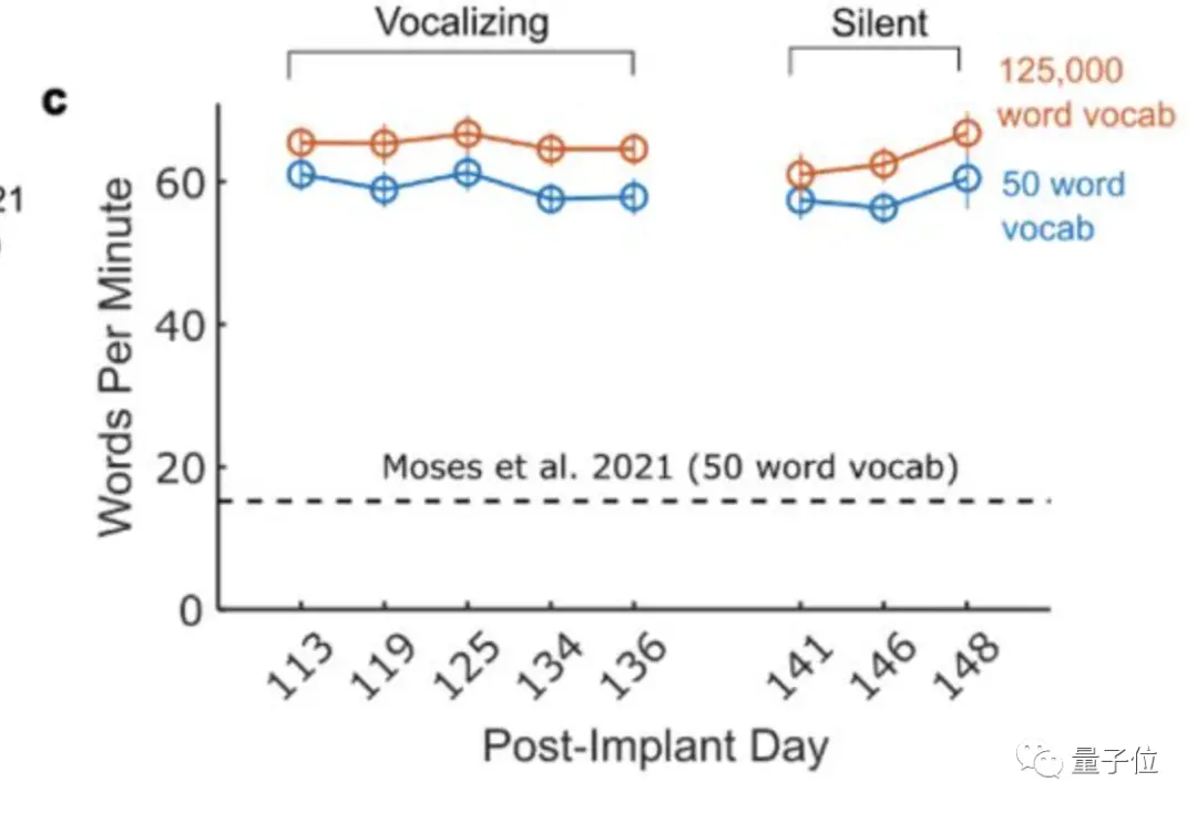 百天之后的测试中,无论是否发出声音,对单词的识别速度均在每分钟 50 词以上,该表现大约是该团队此前 2021 年纪录的 3 倍。
