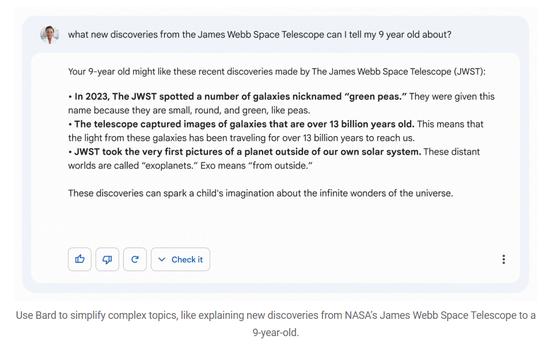 值得一提的是,这份声明本身也引发了轩然大波。在谷歌官方公布的Bard案例中,Bard在回答“如何向9岁小孩介绍詹姆斯·韦伯空间望远镜成果”时,提到该望远镜拍摄到首张地球外行星的照片,但这一成就实际上是智利甚大望远镜在2004年达成的。目前这项错误仍能在谷歌的官网上看到。随着周三消息发酵,谷歌股价也在开盘后大跌逾5%,微软一度涨逾3%。