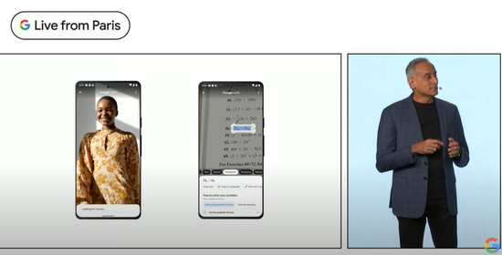 谷歌工程副总裁Elizabeth Reid随后宣布,谷歌将会在未来数月上架“手机屏幕搜索”的功能,例如在聊天应用中对一处景点的知识进行检索。Elizabeth表示,通过这项功能,你能够检索“所有可见的东西”。同时用户也能对图像上的产品进行“图片+文字”的多重搜索,例如寻找自己身边提供类似产品的商家