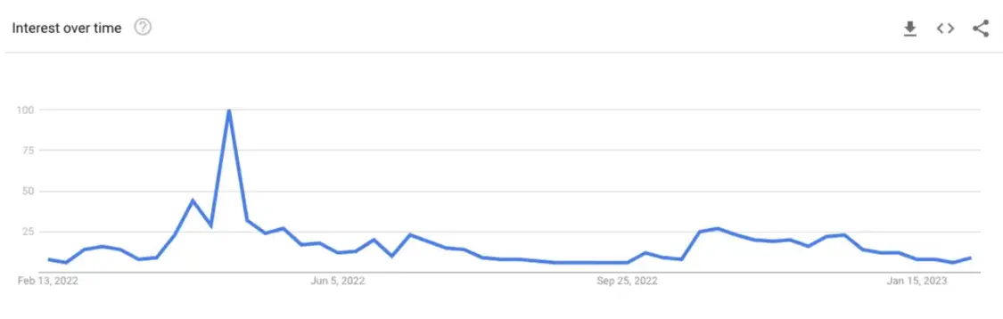 这些员工随后向马斯克展示了内部数据和来自谷歌趋势的图表,表明公众对马斯克的兴趣正在减退。谷歌趋势的数据显示,马斯克的人气在去年4月份他提出收购Twitter时达到100分的峰值,随后下降到只有9分。