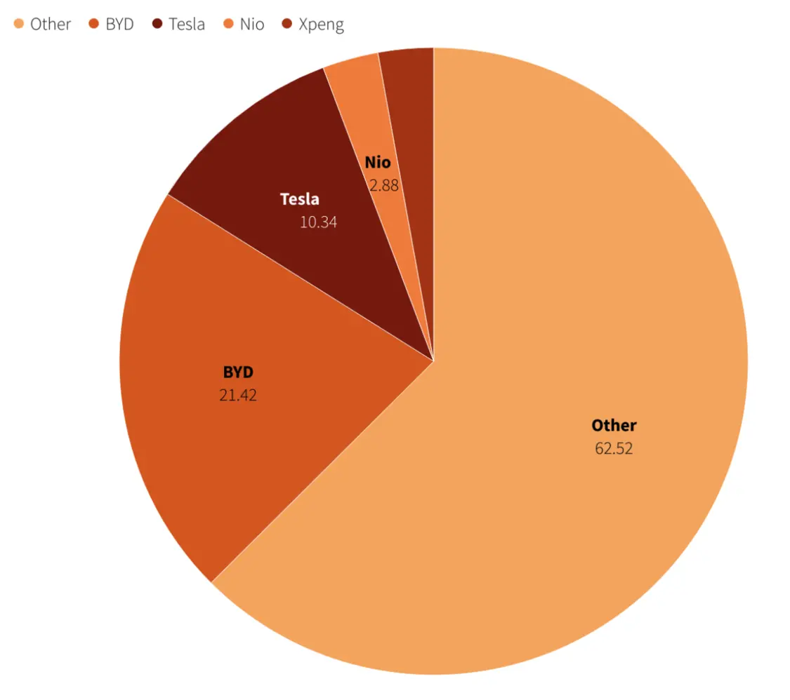尽管特斯拉在其第二大市场中国的销量有所增长,但其市场份额也有所下降。乘联会的数据显示,特斯拉2022年在中国电动汽车市场的份额已从2020年的15%下降了三分之一,仅剩下10%。