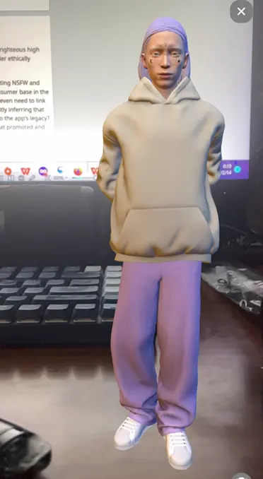 此外,用户还可以通过“AR放置”将小人放在现实场景里,甚至可以通过Meta的服务在VR虚拟世界里与AI小人“面对面”。