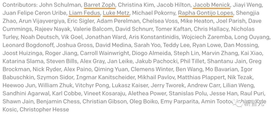 在OpenAI的官宣博客中,Barret Zoph、Liam Fedus、Luke Metz、Rapha Gontijo Lopes,这几位前Google员工的名字,被列在了ChatGPT的主要贡献者名单中。