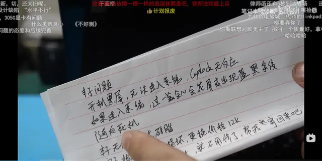原来,这位 UP 表示,自己在短时间内收到了多台出现故障的联想小新轻薄本。