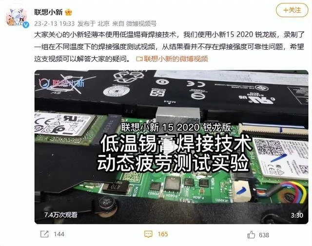 联想本次采用的低温锡膏,在长时间的热胀冷缩后。