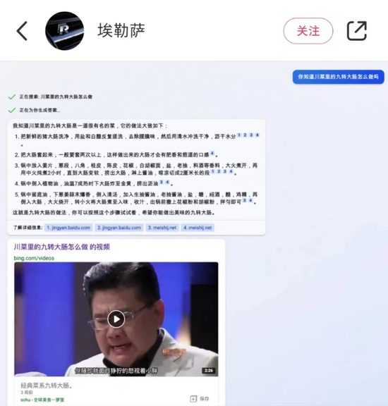 它有时会跳进用户设下的陷阱里。问它“川菜里的九转大肠怎么做”,它给出了菜谱,但九转大肠不是川菜,而是鲁菜。