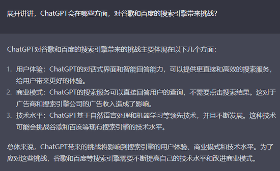 ChatGPT亲答它会对搜索引擎带来哪些挑战。