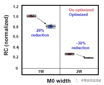 图13 通过创新的屏障工艺,在最紧密的间距处显著降低Rc。