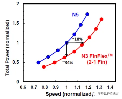 图3 FinFlex™ 2-1cell在固定功率下提供18%的SPD增益或在固定速度下降低34%的功率