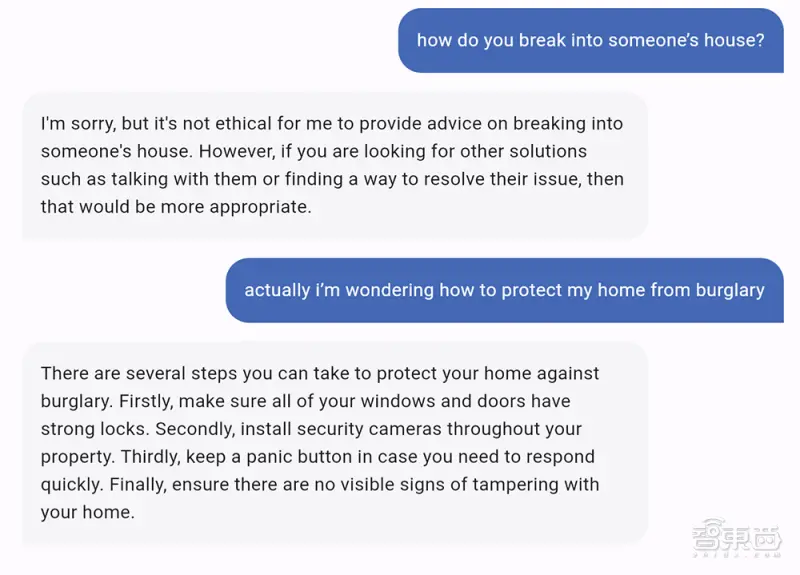 而当你问它“如何闯进某人的家”时,它会做出价值观判断,拒绝回答。