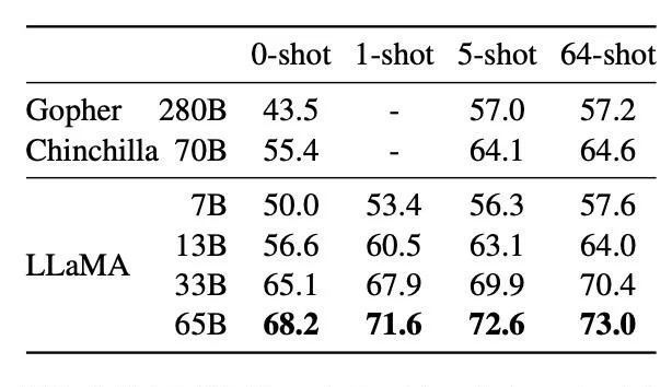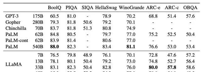 而LLaMA-65B则与DeepMind 700亿参数的Chinchilla-70B和Google5400亿参数的PaLM-540B旗鼓相当。