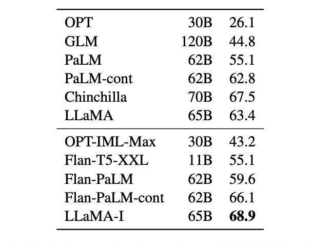 由此产生的模型LLaMA-I,在MMLU上要优于Flan-PaLM-cont(62B),而且还展示了一些有趣的指令能力。