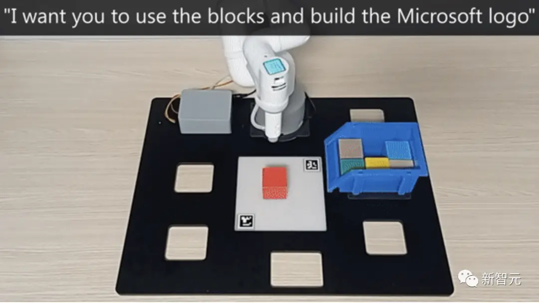 此外,还有一个例子能展现出ChatGPT的强大能力,研究人员要求模型用木块构建微软标志,即需要将文本域和物理域连接起来。