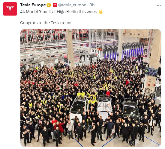 去年3月22日举行开业典礼的特斯拉柏林超级工厂,投产即将满一年,产能也还在不断提升中,Model Y的周产量已经达到了4000辆。特斯拉柏林超级工厂Model Y周产量提升至4000辆,是由“Tesla Europe”周一在社交媒体上披露的,他们公布的信息显示,在过去的一周,柏林超级工厂生产了4000辆Model Y。