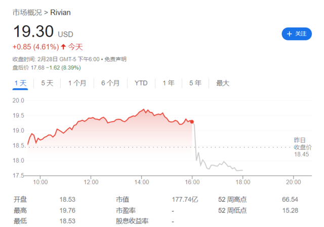 财报给出的指引称,Rivian预测今年将生产5万辆电动汽车,低于市场预期的6万辆车。Rivian盘后股价大跌超8%。