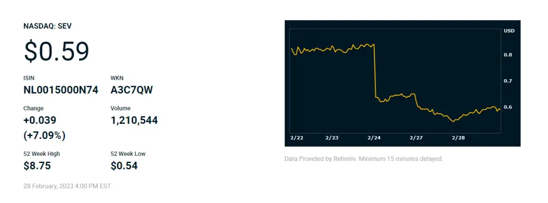 但上市即是巅峰的Sono,股价从刚开盘的24.80美元一路下跌至现在的不足1美元,显然已经无法支撑Sion的生产。