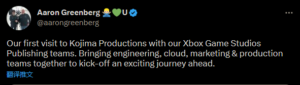 小岛秀夫英文账号日前发布了一系列照片,展示了和微软团队的会面。微软团队来到了小岛工作室,并在著名的炫酷欢迎室里拍照留念。之后,微软 Xbox 游戏营销副总裁 Aaron Greenberg 转发了小岛的推文,并表示这是 Xbox游戏工作室发行团队首次访问小岛工作室。