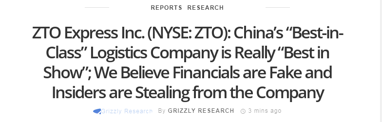 灰熊的这份报告名为《中通快递:中国“一流”物流企业实为“作秀”;我们认为其财务数据是假的,内部人士在从公司偷窃》。
