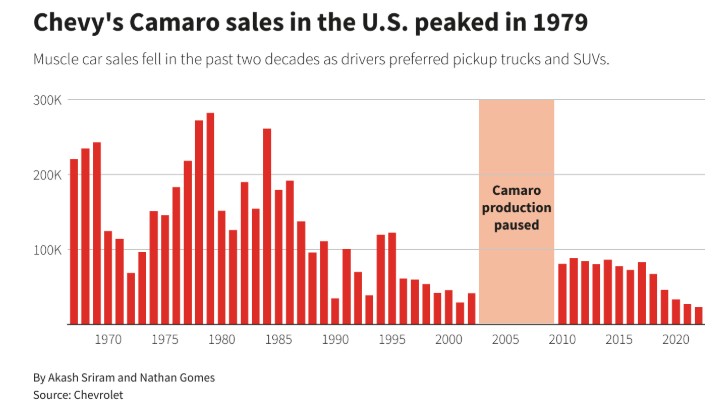 随后多年,由于消费者逐渐转向卡车和SUV,肌肉车的销量继续恶化。并且,如今电动汽车时代强调更高的效率和更低的排放,并带来强劲的加速性能,肌肉车需求面临进一步下滑的风险。