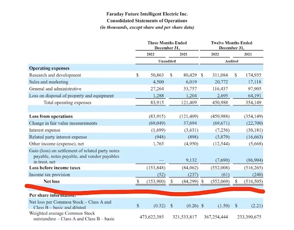 另外,FF还宣布了1.35亿美元可转换担保票据融资承诺。财报显示,自2022年12月以来,FF已收到1.116亿美元用于SOP(开始生产)的资金,还将收到3840万美元至5840万美元的额外资金。