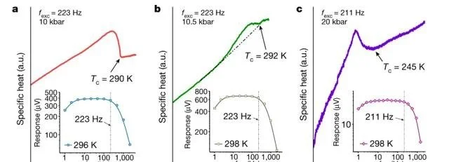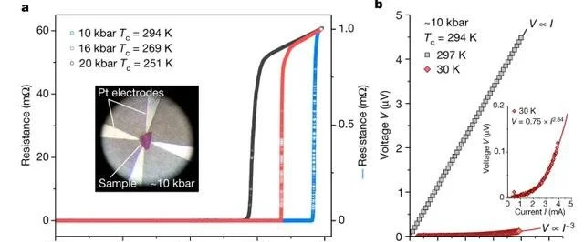 罗彻斯特大学的Dias团队宣称,他们发现了近常压的室温超导体,该超导体是由氢、氮、镥三种元素组成的三元相,该研究团队认为,其在大约10kbar(也就是1GPa,约相当于1万个大气压)下可以实现约294K(也就是约21℃)的室温超导电性。
