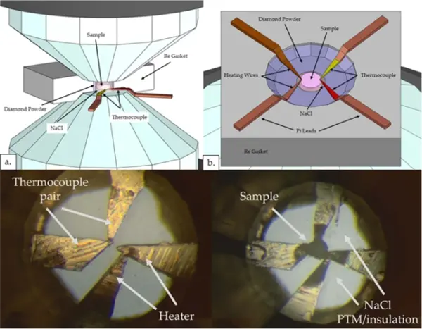 在试验过程中,Dias团队将镥箔这种金属片,挤压在两个钻石之间,然后把含有99%的氢气和1%的氮气通过气泵打入他们这个称为“金刚石压砧(diamond anvil cell)”的装置中,最后测量化合物的变化。