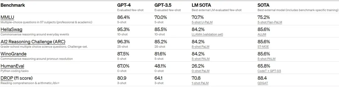 OpenAI 还在为 机器学习模型设计的传统 基准上评估了 GPT-4。GPT-4 大大优于现有的大型 语言模型,以及大多数 SOTA 模型:
