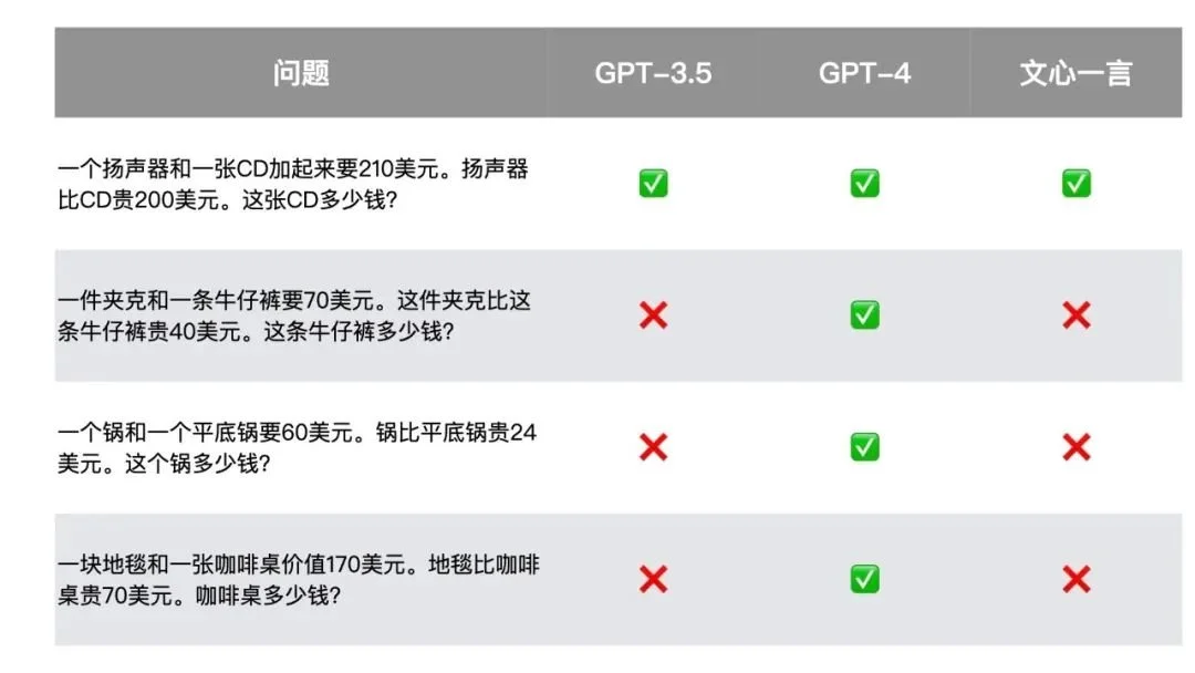 26 道题目,GPT-3.5 答对 15 道;GPT-4 答对 23 道;文心一言答对 2 道。