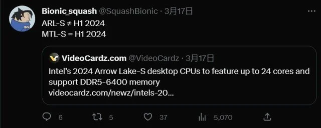 但是,SquashBionic 最新消息称,英特尔将在 2024 年第一季度推出 Meteor Lake-S 处理器,Arrow Lake-S 则不会那么快推出。据称,Meteor Lake-S 基础频率支持可以达到 DDR5-6400,但具体规格取决于 die 的配置。