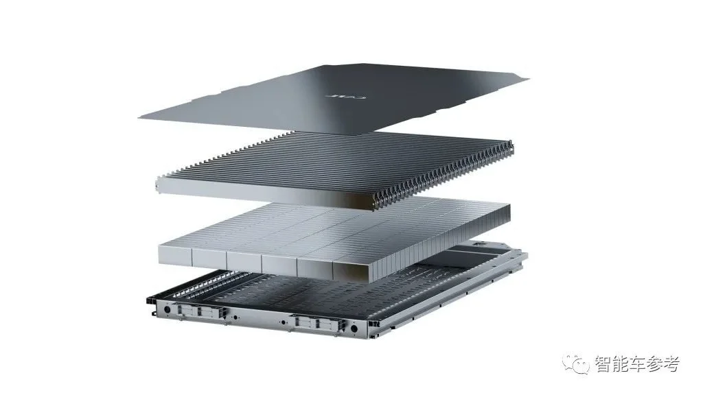 麒麟电池突破了功能部件的边界,将横纵梁、水冷板与隔热垫三合一,集成为多功能弹性夹层。