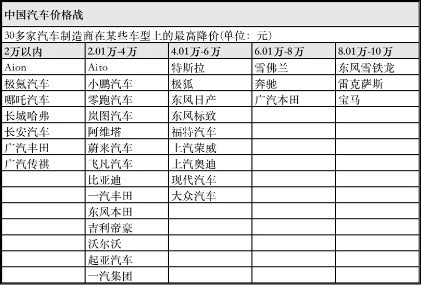 根据外媒和国内媒体的统计,至少还有30多家汽车制造商已经降价。中国汽车工业协会周三呼吁结束价格战,称这不是解决销售放缓和库存积压问题的长久之计。该机构表示,该行业应“恢复正常运营”,以确保健康发展。