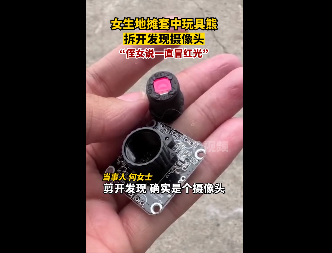 女生地摊套玩具熊拆开发现摄像头 已在卧室放了3个月