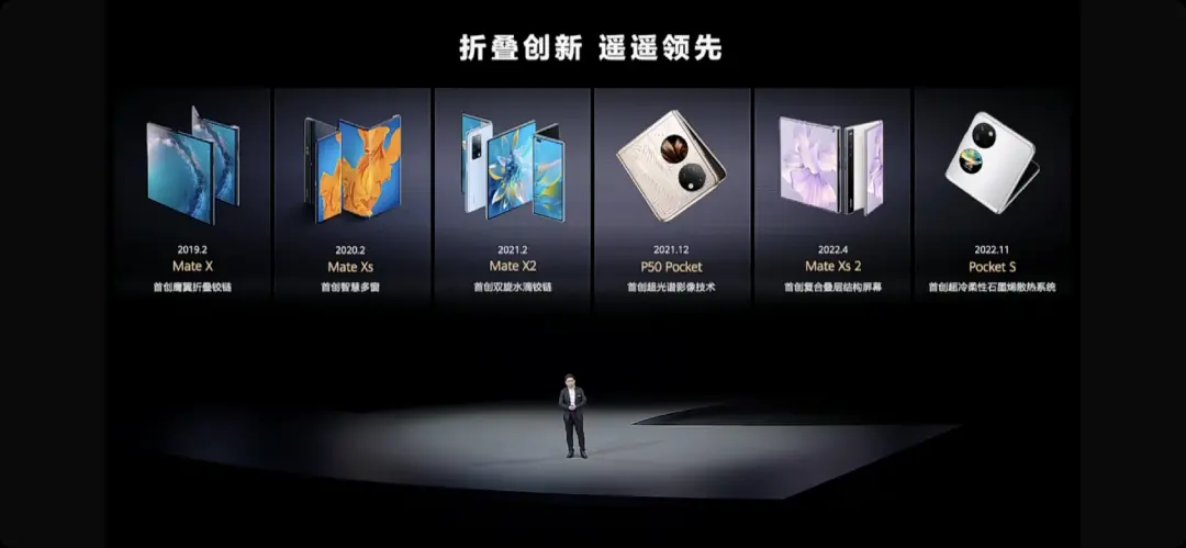 发布会现场,余承东在介绍自家折叠屏手机时强调,华为每一代折叠屏都在不断创新,“可以说折叠屏的技术,华为一定是遥遥领先的。”
