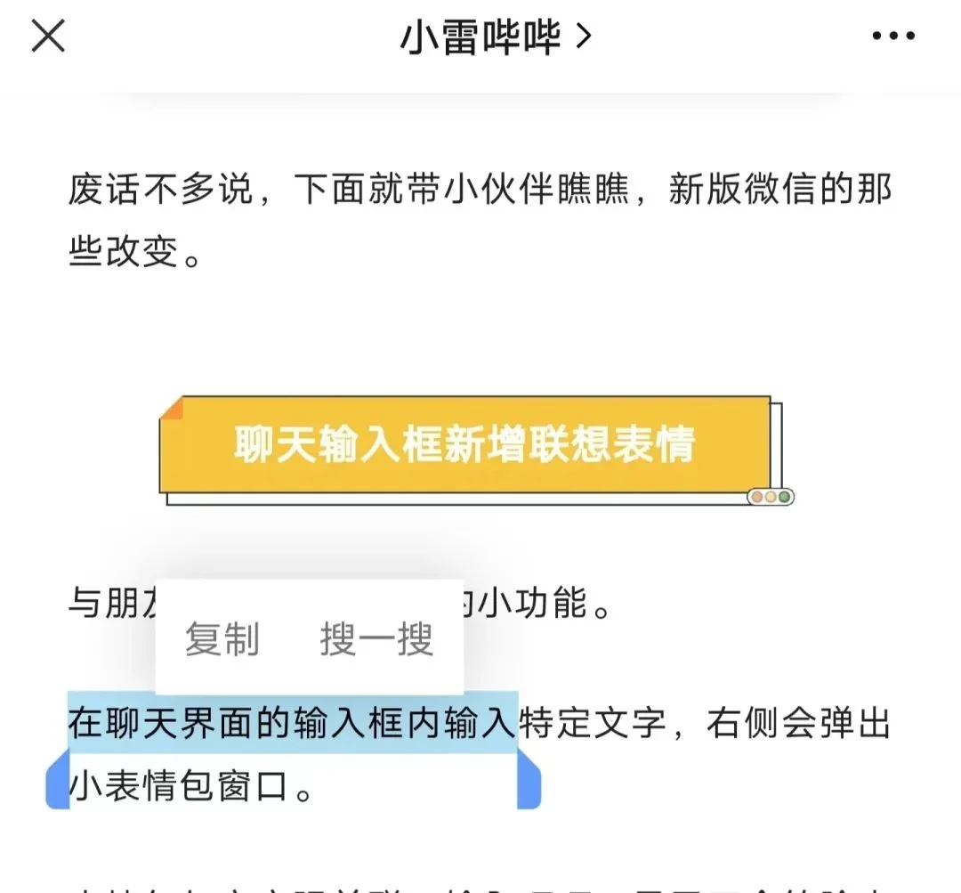 然而最新版微信却把两个小功能砍掉,保留最基础的复制和搜一搜。