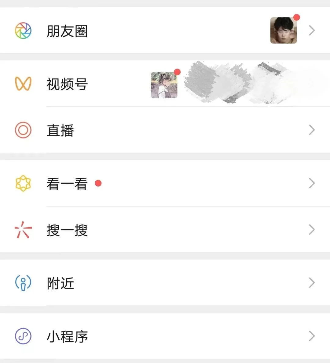 所谓的更新提醒,指微信发现页里的朋友圈、视频号等入口的小红点。