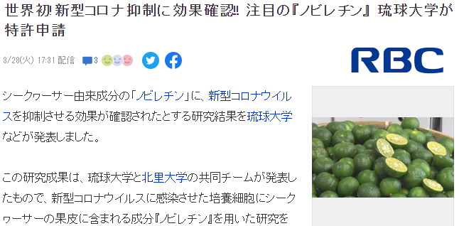 据外媒报道,琉球大学正在为最新新冠研究成果申请研究专利,该项研究证实了来自台湾香檬,学名扁实柠檬(Citrus Depressa)的密橘黄素·川陈皮素(Nobiletin)可有效抑制新冠病毒。