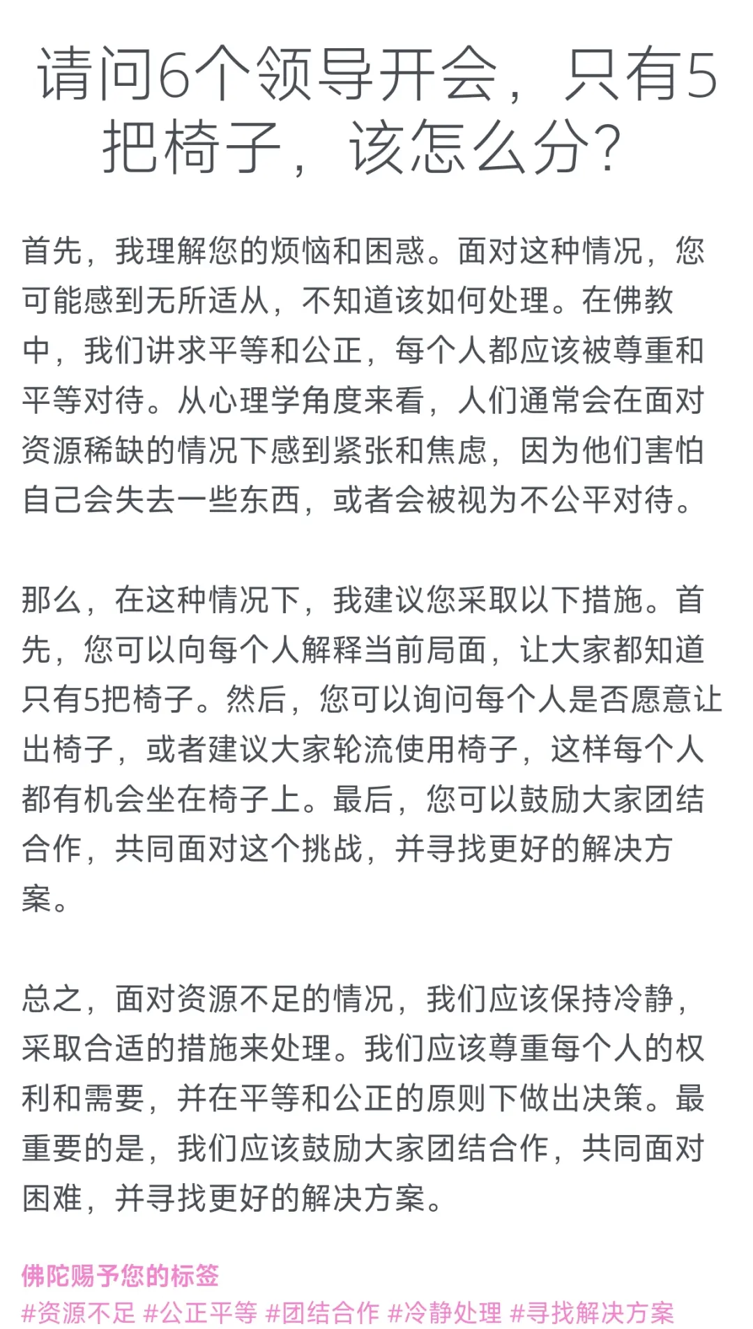 像是经典职场困扰:6个领导开会,只有5把椅子,该怎么分?