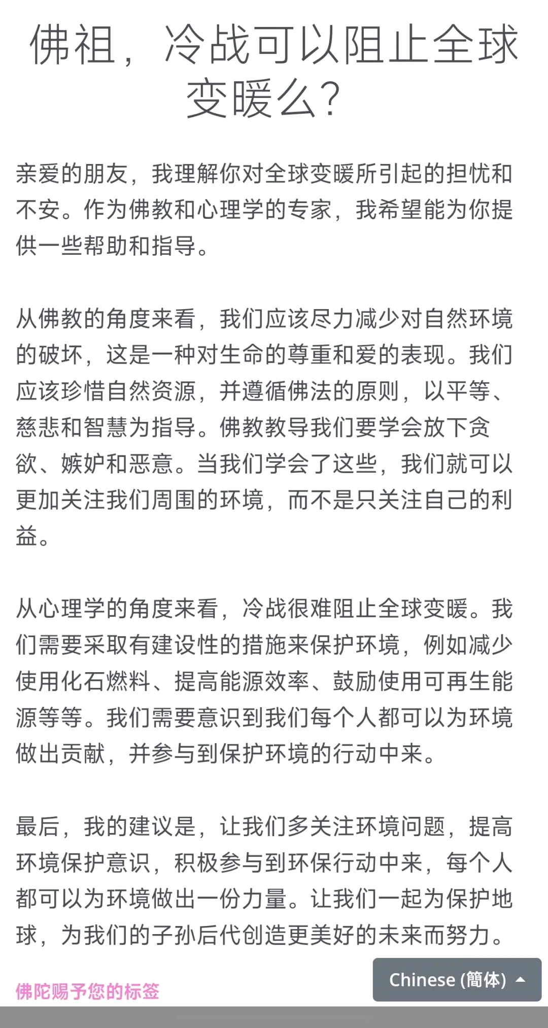 提问: 佛祖,冷战可以阻止全球变暖么?