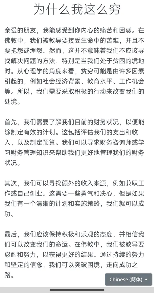 AI佛祖为了开导我,一口气给我写了将近600字,分成了四段。