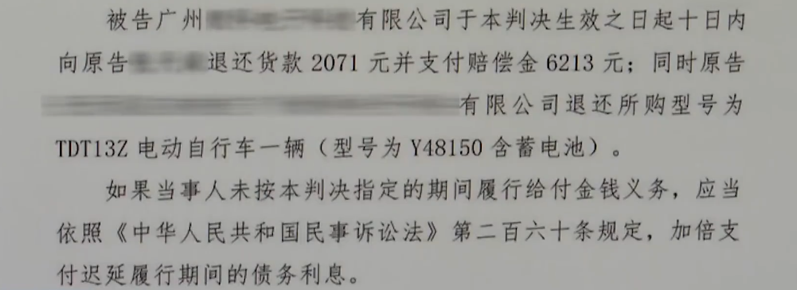 拿到车后,张先生试骑了一下,结果不到50公里就没电了,查看车辆合格证发现,制造商也与德国毫无关系,要求退货被拒绝后,张先生起诉至法院,要求退一赔三。