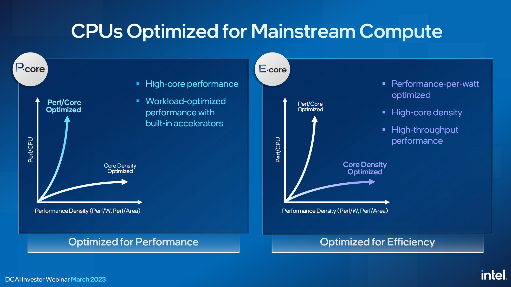 二是针对能效优化的E核能效核设计,核心数量更多,吞吐性能更高,能效更好,适合云市场,产品代号均以Forest(森林)结尾,对应密密麻麻的核心数量。