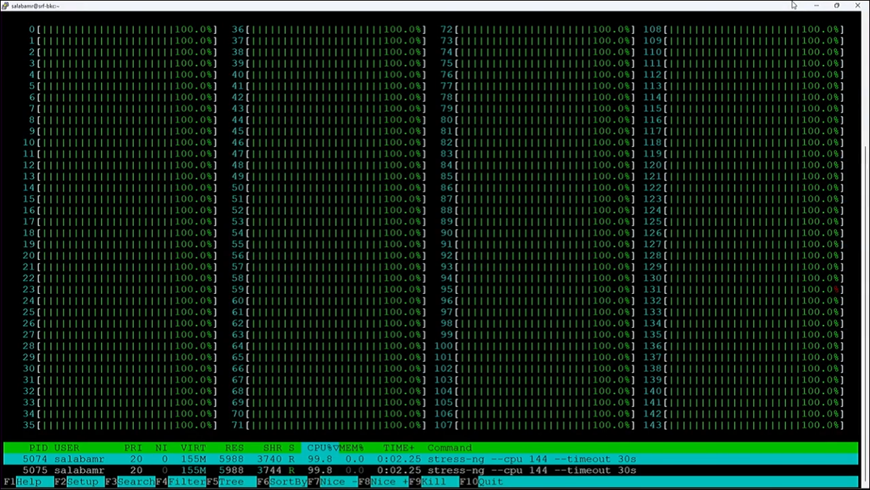 来感受下密密麻麻的144核心同时运行的壮观场景。