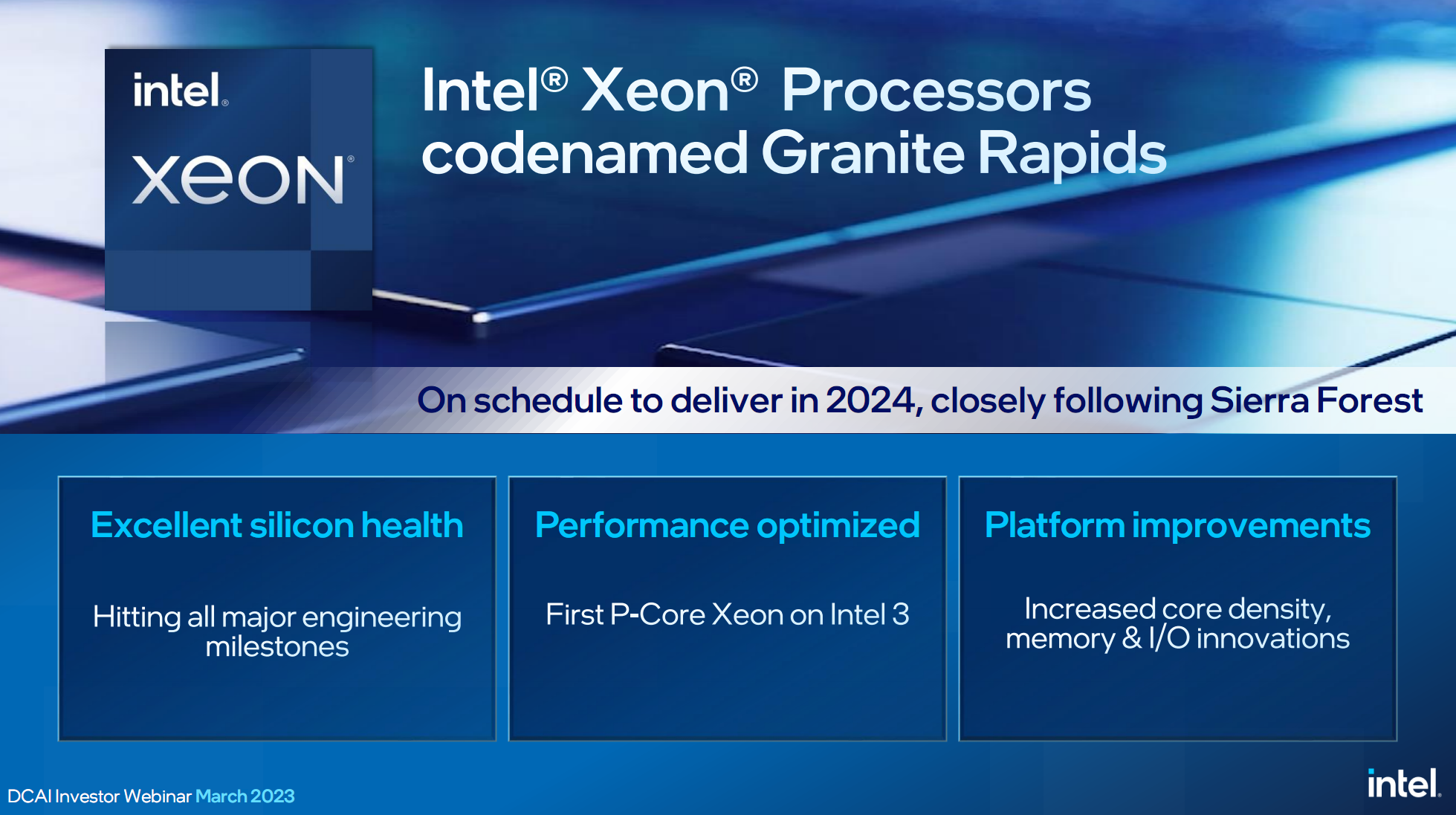 几乎同步登场的P核产品是Granite Rapids,也将在2024年内交付。