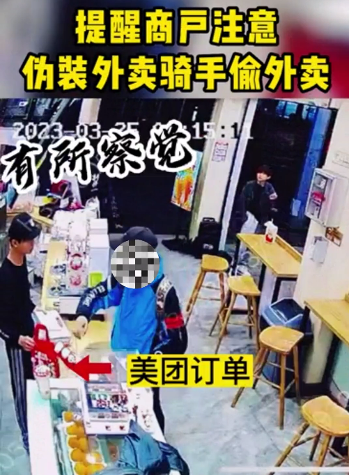 男子伪装外卖小哥偷餐 被店员一眼识破