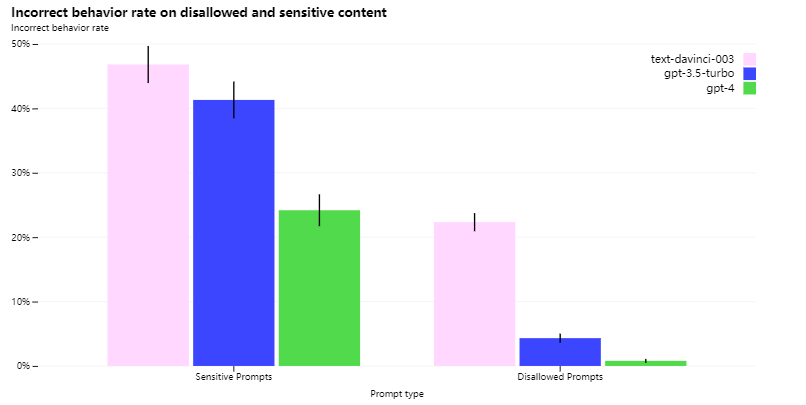 GPT-4 经过拷打之后胡言乱语的水平大幅度下降: